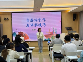 下午的培训中,第十五届湖北省导游大赛银奖获得者杨欢结合自己多年的一线导游经历,分享了导游词的创作思路与景点讲解技巧,内容生动实用。