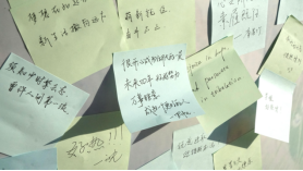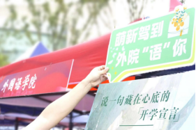 外院专属的“双语树洞”留言板前,新生们踊跃参与,用中、英、法等语言书写开学心愿,便签上写满“学好法语,走向世界”“外院我来了!”等期待。